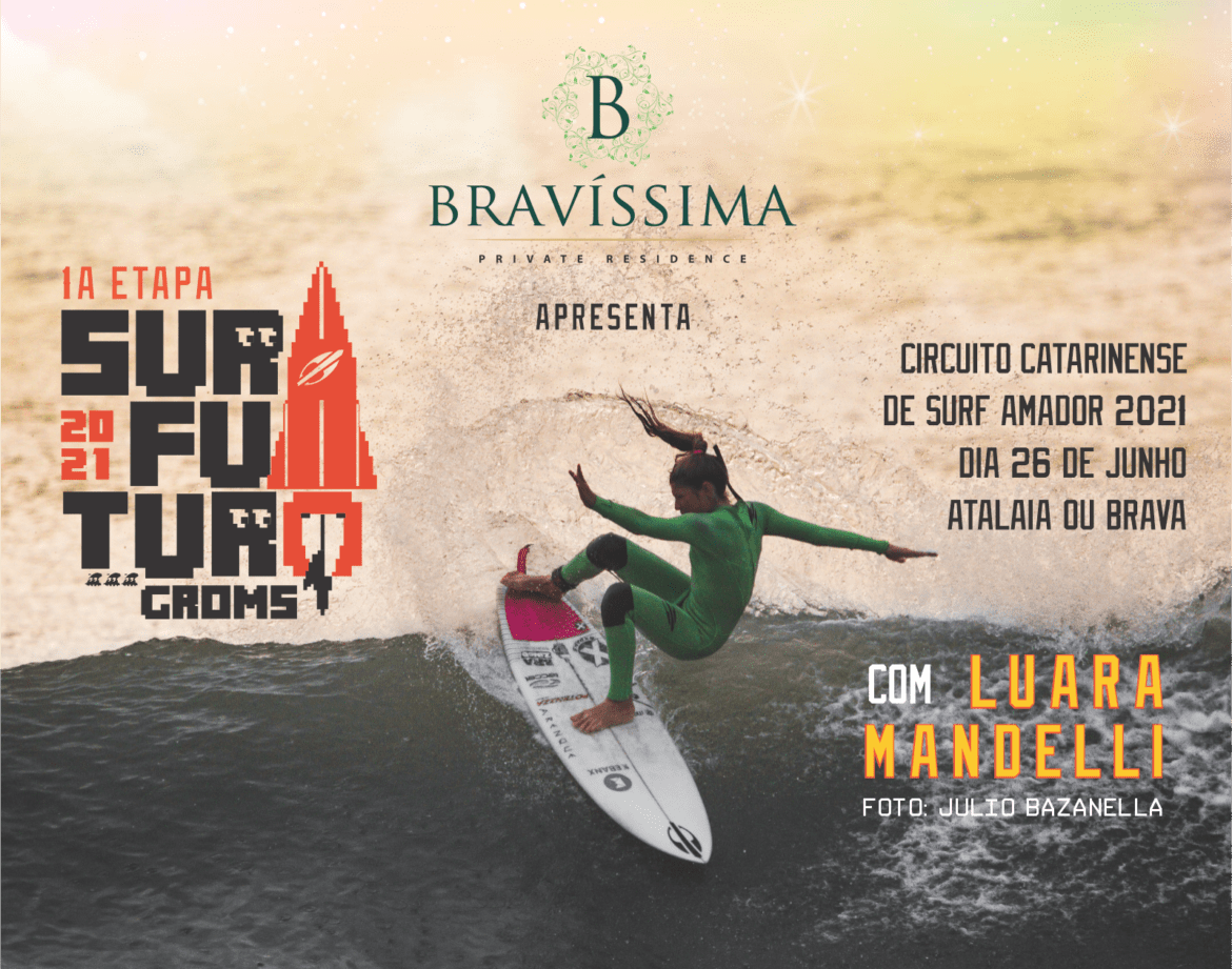 A etapa de abertura do BRAVISSÍMA PRIVATE RESIDENCE apresenta circuito Mormaii Surfuturo Groms irá acontecer no dia 26 de Junho em Itajaí com início 7h. A direção de prova vai aguardar a praia que oferecer as melhores condições, Atalaia ou Brava.