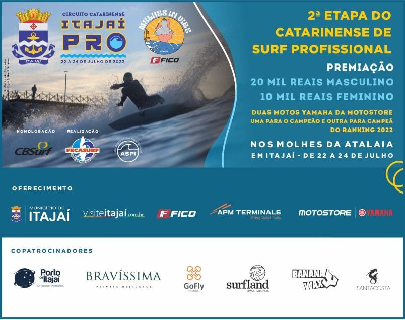Beto Luz, presidente da ASPI , representou o município que recebeu uma etapa do Catarinense de Surf Profissional, o Itajaí Pro 2022, depois de 11 anos! Inclusive a etapa vencida por Matheus Navarro, local de Itajaí, e Tainá Hinckel.