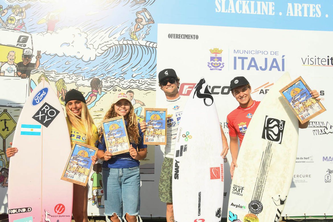 José Francisco e Tainá Hinckel, campeões catarinense de surf profissional 2022 (Foto Márcio David)